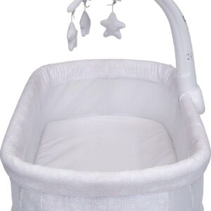 – ACTIVITY ARM: The activity arm features rotating plush stars, vibration, music, nature sounds, nightlight and twinkle lights, it also swivels so you can easily load and unload baby