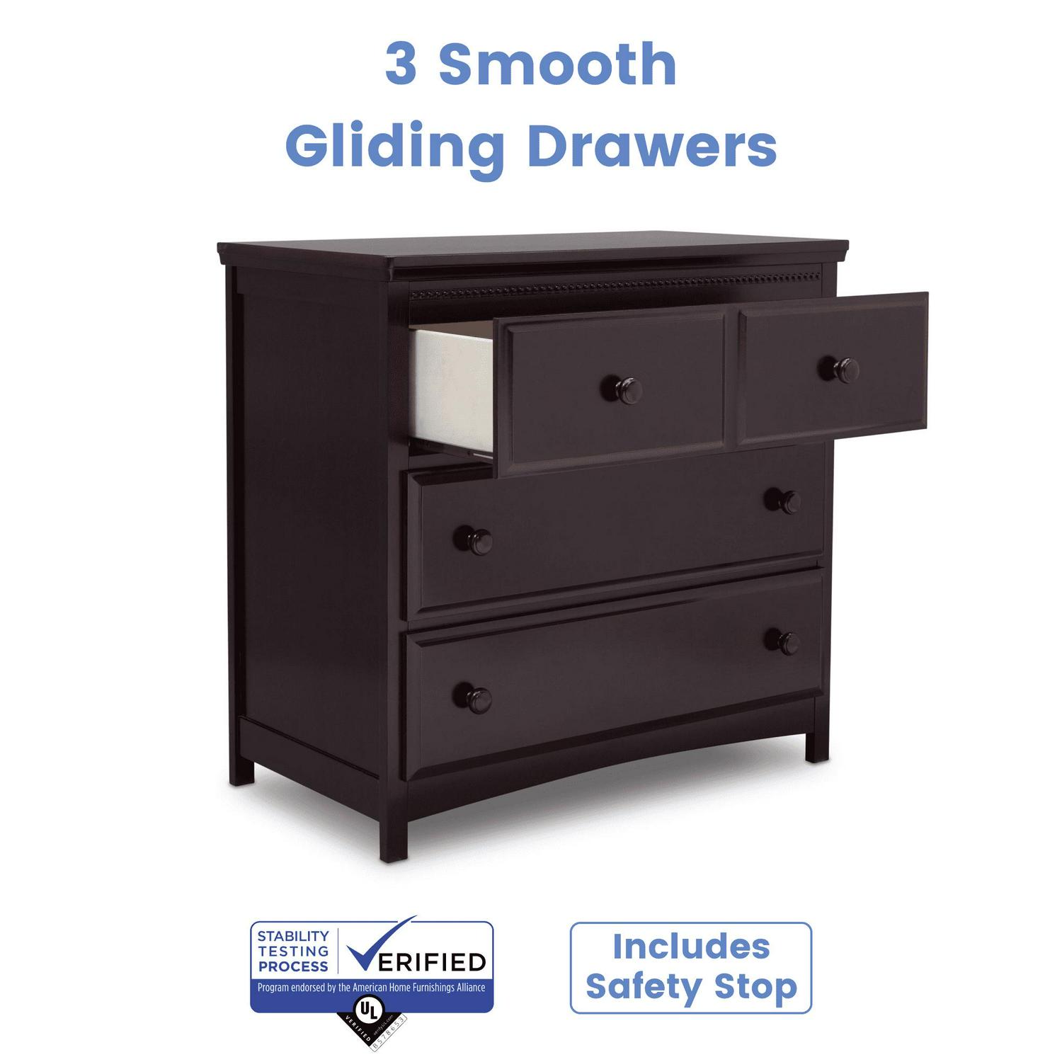 – TONS OF STORAGE: 3 spacious drawers feature metal drawer guides with safety stops for years of worry-free use