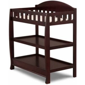 – The Delta Children’s Products Wilmington Changing Table with pad has 2 fixed shelves for open storage