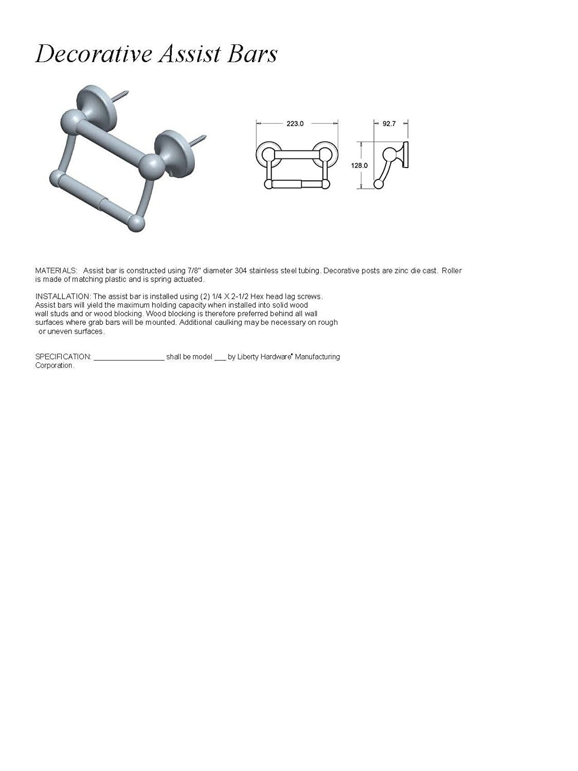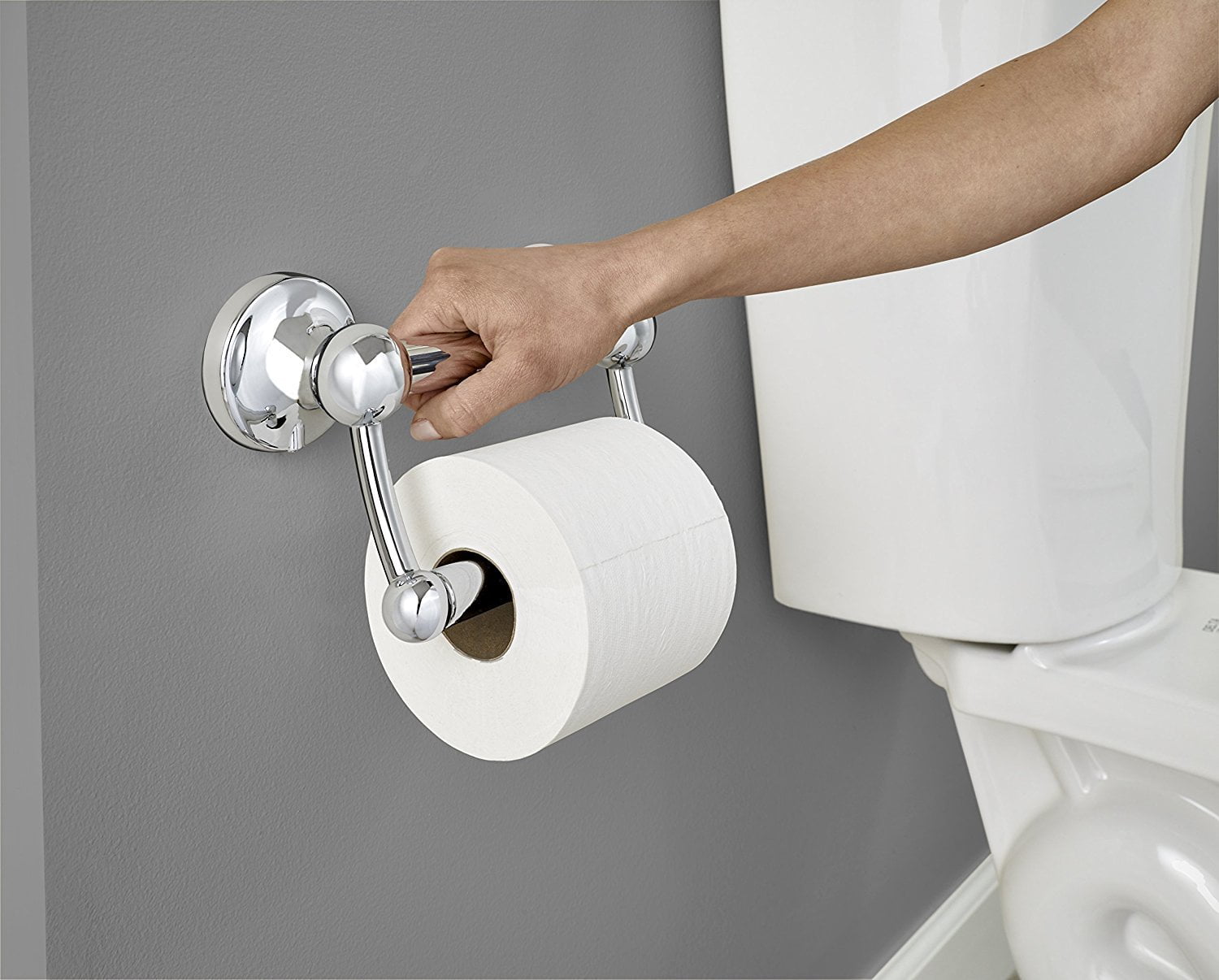 The DELTA traditional toilet paper holder with assist bar offers a classic spring-loaded tissue holder with an integrated assist bar for leverage Developed with a rust-resistant and durable stainless steel bar and the finest die-cast zinc posts for superior strength and quality Support for up to 300 pounds Available in Polished Chrome for a crisp, clean look Hides screws on the mounting flange with a secure cover