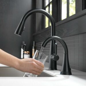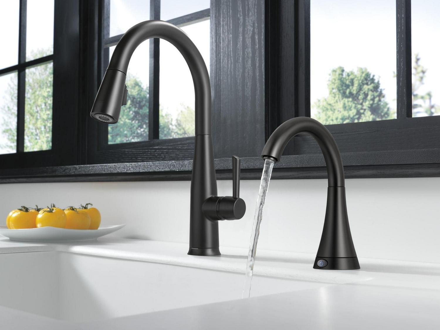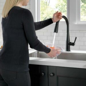 Delta Essa Single Handle Pull-Down Kitchen Faucet with Touch2O Technology in Matte Black 9113T-BL-DST