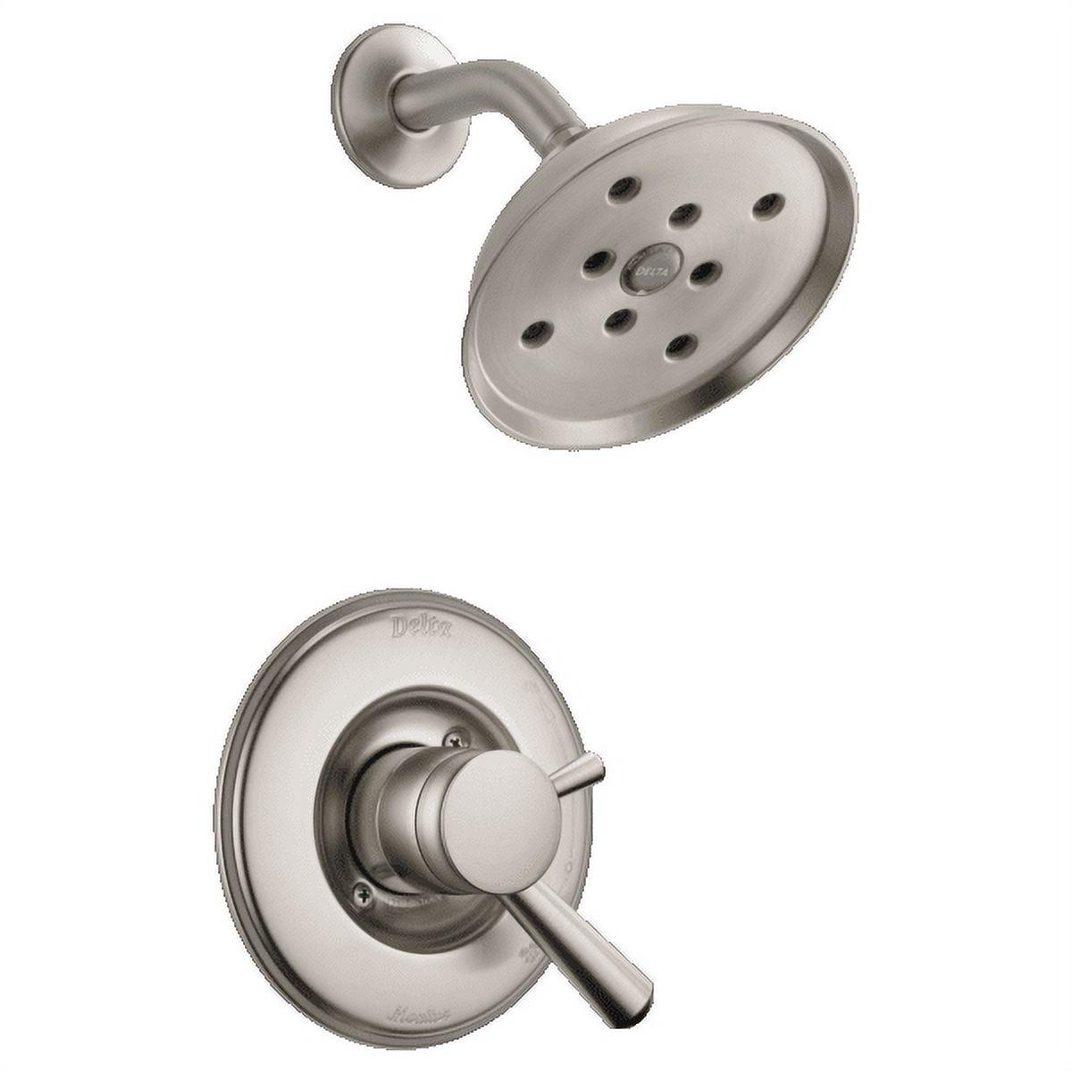 With separate handles for volume and temperature control, this Delta tub/shower provides a more refined showering experience. Simply set the water at your preferred temperature and turn the shower on or off with the volume control handle – without interrupting your set temperature. While other products may gather unsightly mineral build-up over time, Delta soft rubber Touch-Clean spray holes allow any mineral residue to simply be wiped away for an instantly refreshed look with no need for soaking or the aid of chemical cleaners. Delta pressure-balance valves use Monitor Technology to protect you and your family from sudden temperature changes. This Brilliance Stainless finish has subtle, warm undertones which make it an excellent match with nickel or stainless steel and is extremely versatile, complementing nearly any look, be it traditional, transitional or contemporary. Delta WaterSense labeled faucets, showers and toilets use at least 20% less water than the industry standard saving you money without compromising performance.
