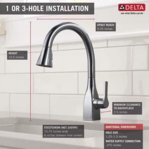 Delta MagnaTite Docking uses a powerful integrated magnet to pull your faucet spray wand precisely into place and hold it there so it stays docked when not in use. Delta ShieldSpray Technology cleans with laser-like precision while containing mess and splatter. A concentrated jet powers away stubborn messes while an innovative shield of water contains splatter and clears off the mess, so you can spend less time soaking, scrubbing and shirt swapping. Delta faucets with DIAMOND Seal Technology perform like new for life with a patented design which reduces leak points, is less hassle to install and lasts twice as long as the industry standard*. Kitchen faucets with Touch-Clean Spray Holes allow you to easily wipe away calcium and lime build-up with the touch of a finger. You can install with confidence, knowing that Delta faucets are backed by our Lifetime Limited Warranty. *Industry standard is based on ASME A112.18.1 of 500,000 cycles.