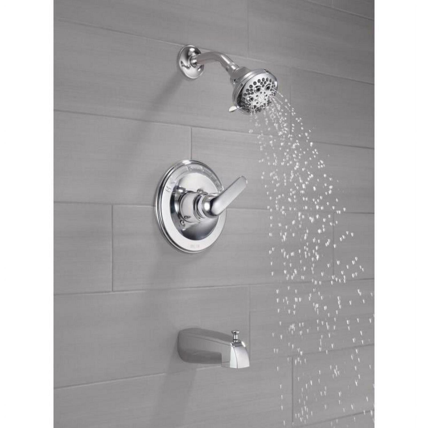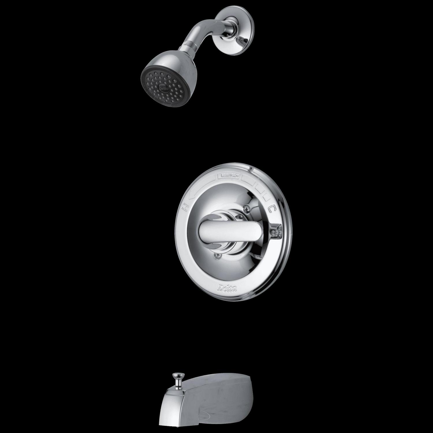 Add simple elegance to your bathroom with the Delta Classic 1-Handle Tub and Shower Faucet. The chrome finish gives the faucet a fresh, clean and sleek look. The single-handle design makes temperature adjustment easy, while the Monitor Scald-Guard valve helps protects you and your family by keeping the water at a consistent temperature.
