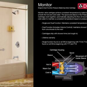 The Delta T13422-PD Classic Bath and Shower Trim with Monitor and Touch Clean Technologies, Chrome has a sensible style that complements any home decor. The excellent design incorporates smart thinking that anticipates your needs with an inspirational design that delights. It features a single lever handle for easy operation and provides a simple yet lovely look in a finish that is easy to clean and maintain. This Delta shower trim, chrome delivers reliable performance and ease of temperature and volume control as well. Update or refresh any bathroom with this attractive item.