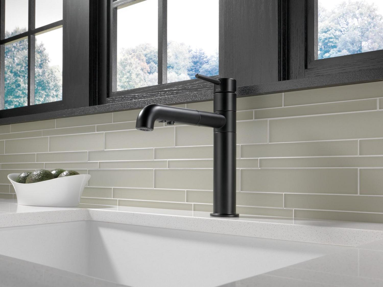 Delta Trinsic Single Handle Pull-Out Kitchen Faucet in Matte Black 4159-BL-DST