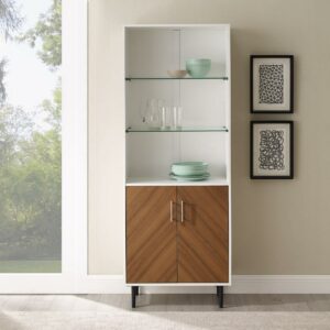 Desert Fields 2-Door Bookmatch Dining Storage Cabinet with Hutch, White: