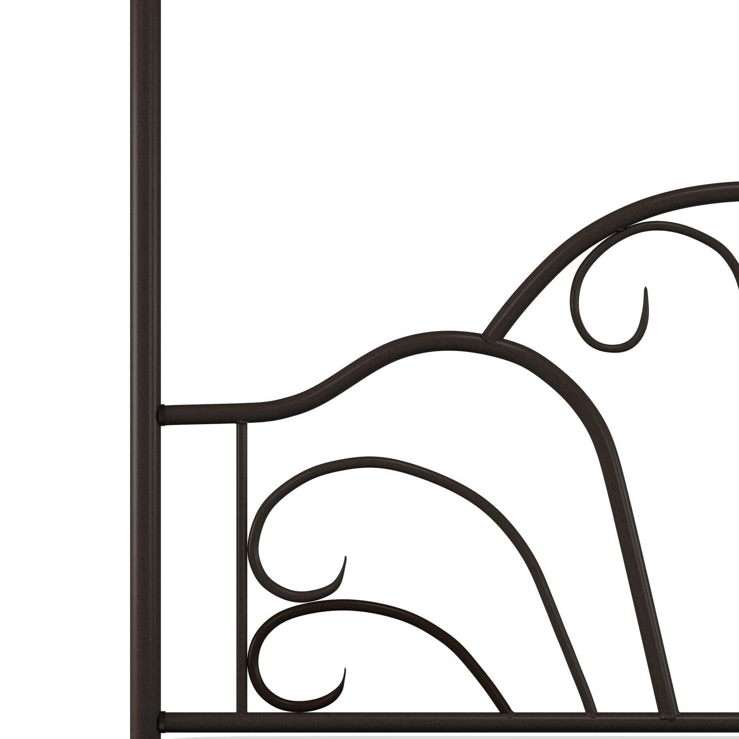 The Desert Fields Dover Canopy Metal Queen Bed Frame is inviting and enchanting. This queen metal bed features a compound arch design that’s adorned with modest metal scrollwork. The textured black finish is reminiscent of wrought iron and is a seamless fit with a variety of decor. This elegant and whimsical queen metal canopy bed with scroll details is offset by a simple canopy frame. It includes headboard and footboard with posts and bed frame. Box spring and mattress required; not included. Bring elegance to your space with the Desert Fields Dover Canopy Metal Queen Bed Frame.