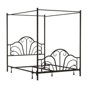Desert Fields Dover Canopy Metal Bed Frame, Queen, Textured Black: