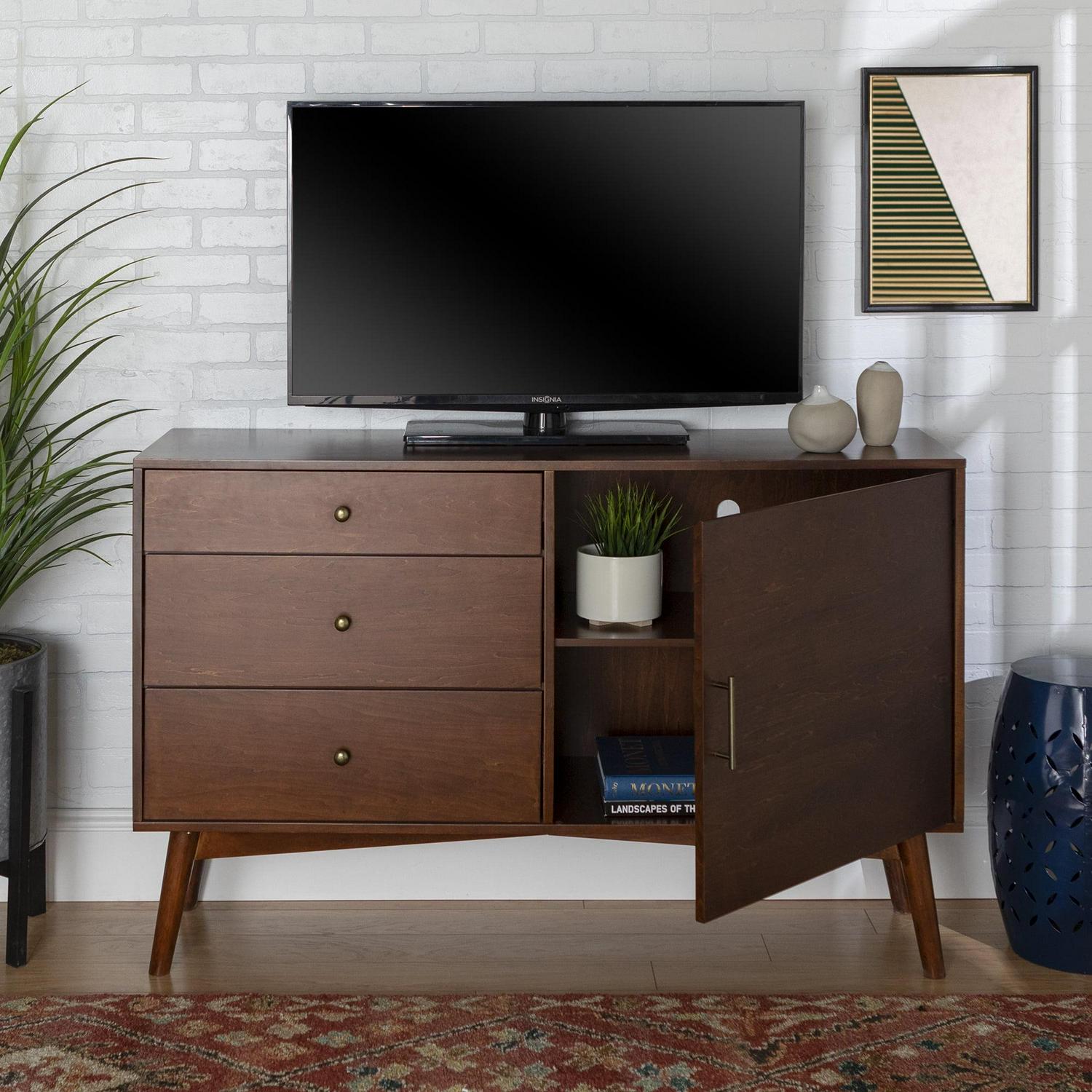 Desert Fields Larsen 3-Drawer TV Stand for TVs up to 58″, Walnut: