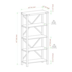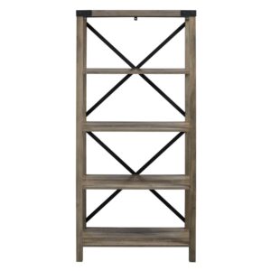 Desert Fields Rustic Industrial 4-Shelf Bookshelf, Gray Wash