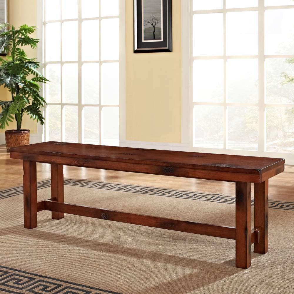 Stop stressing about entertaining friends and family over the holidays with the purchase of this Desert Fields Transitional Wood Dining Bench. The warm, distressed finish creates a homey atmosphere to help make memories that will last a lifetime. Pull this dining bench up to the kitchen table to create more seating space or place it in the entryway hall to provide a spot to sit down and put on shoes. Place pillows on the top for an even more comfortable experience that allows visitors to stay for a while. High-grade MDF and solid wood veneers provide a classic look that will become a staple in your home for years to come because of this bench’s durable construction. Add seating with style when you add the Desert Fields Transitional Wood Dining Bench.