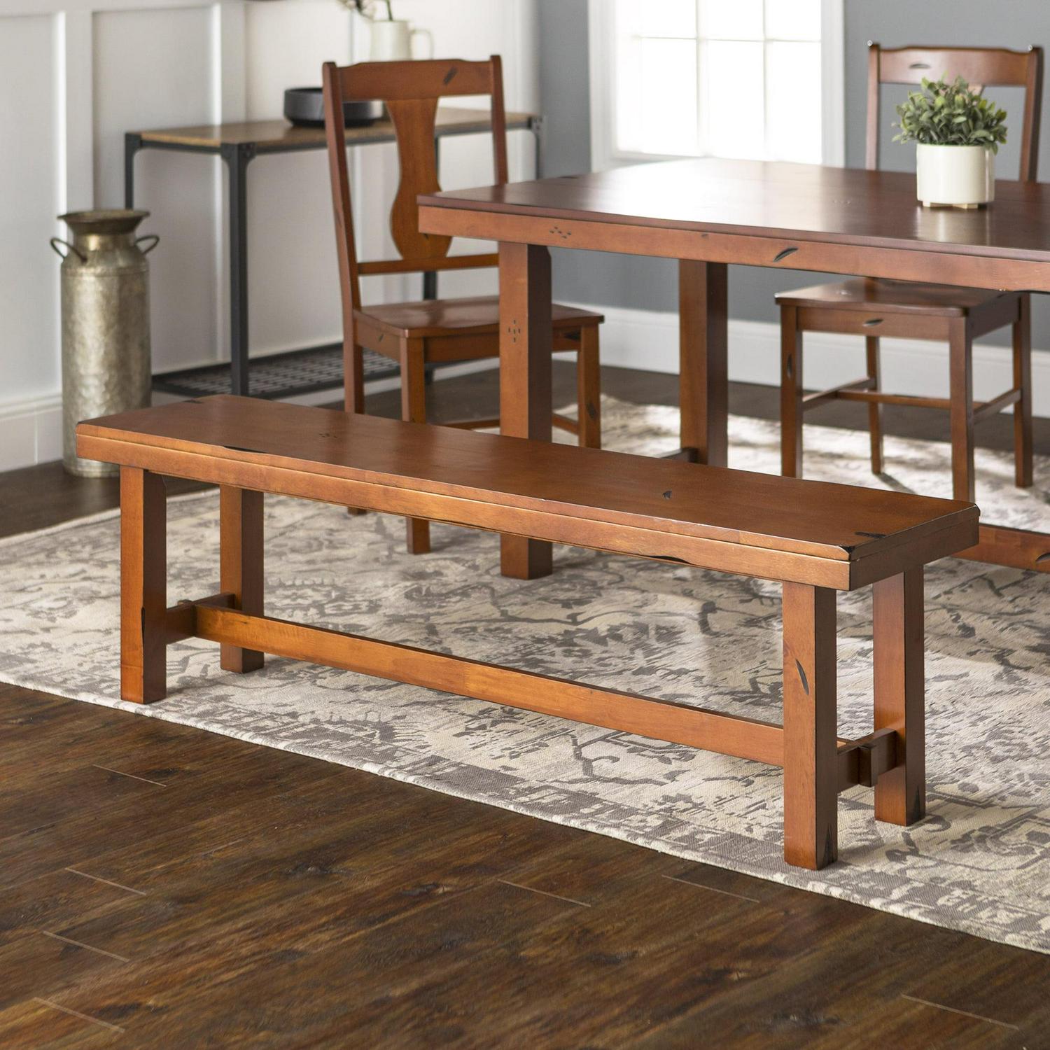 Desert Fields Transitional Wood Backless Dining Bench, Dark Oak