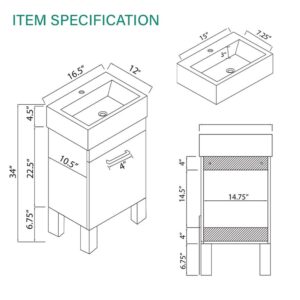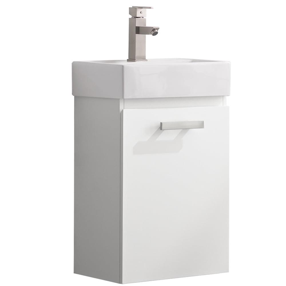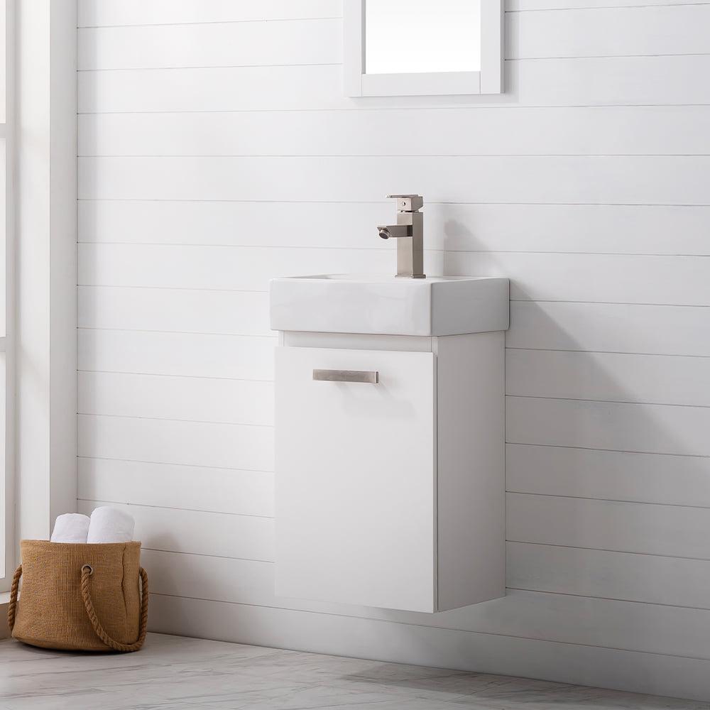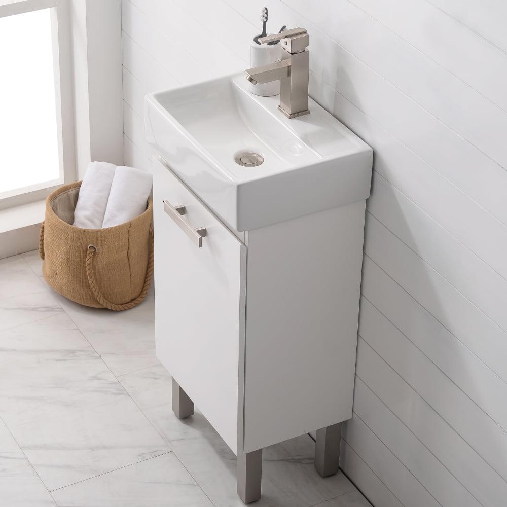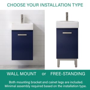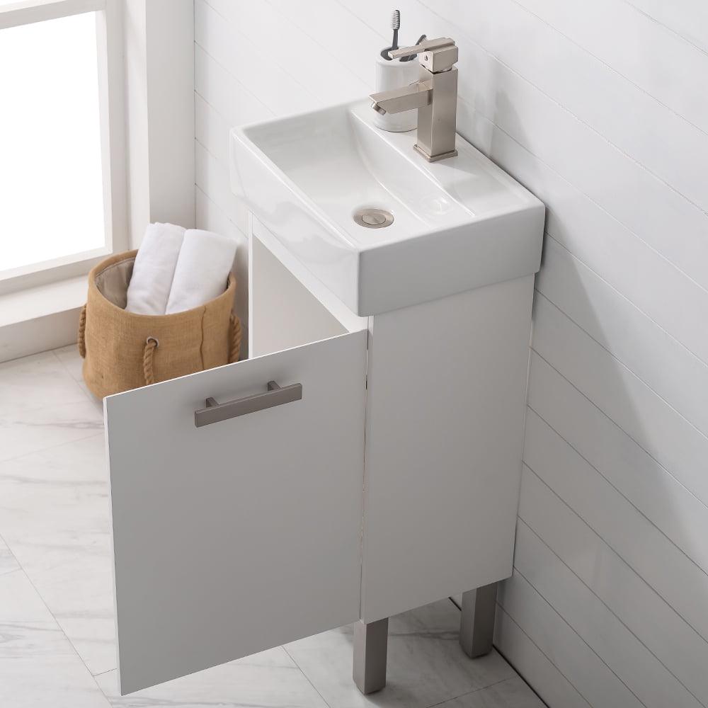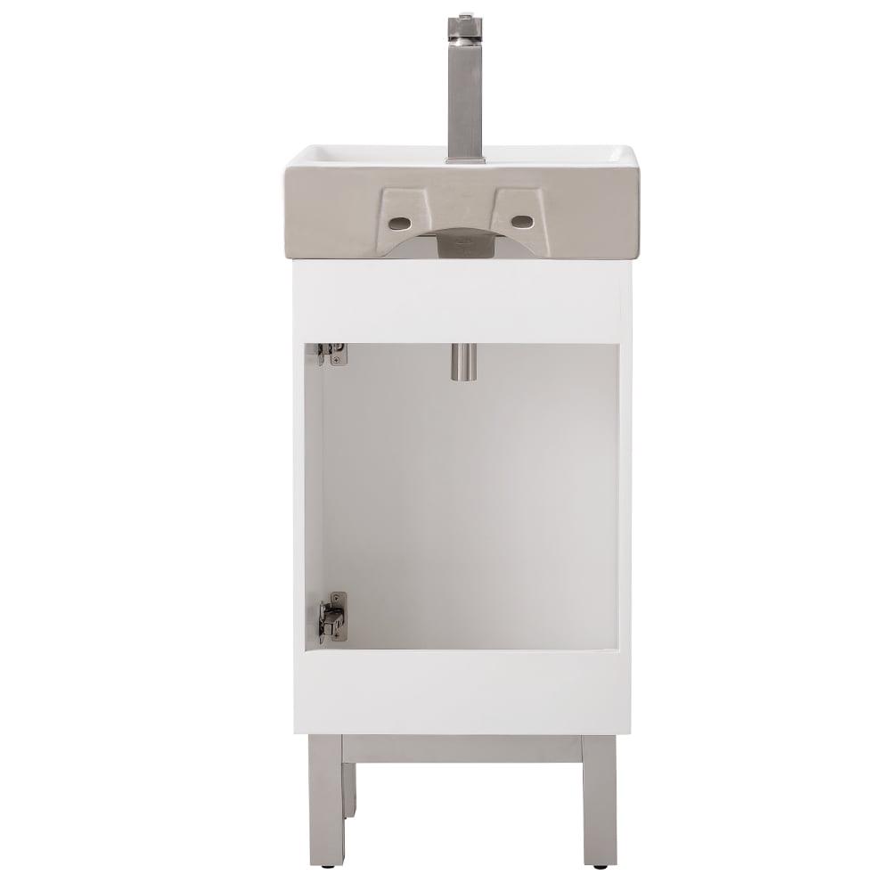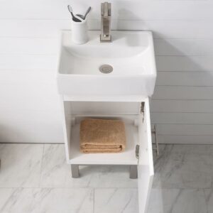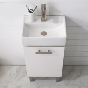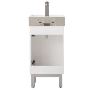 Design Element Stella 16.5a Pre-assembled Vanity Set in White with Porcelain Top – Freestanding and Wall Mount
