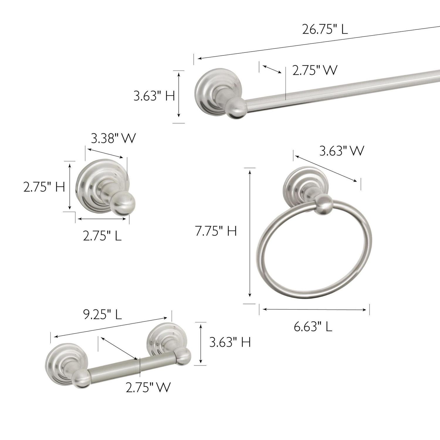 – Timeless Design: With a classic satin nickel finish and concealed screws, this accessory set pairs well with all bathroom decor styles and won’t go out of date with its classic appearance