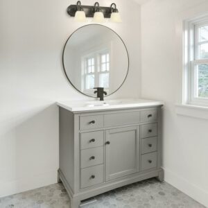 – Three Light Vanity Light: Uses three 60-watt medium base bulbs or LED equivalent (not included)