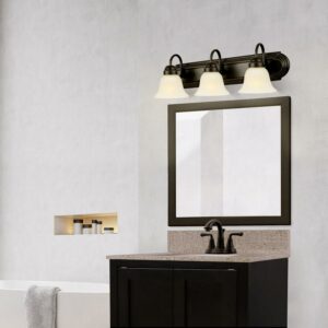- Traditional Style Vanity Light: Stunning Oil Rubbed Bronze finish with frosted glass shades