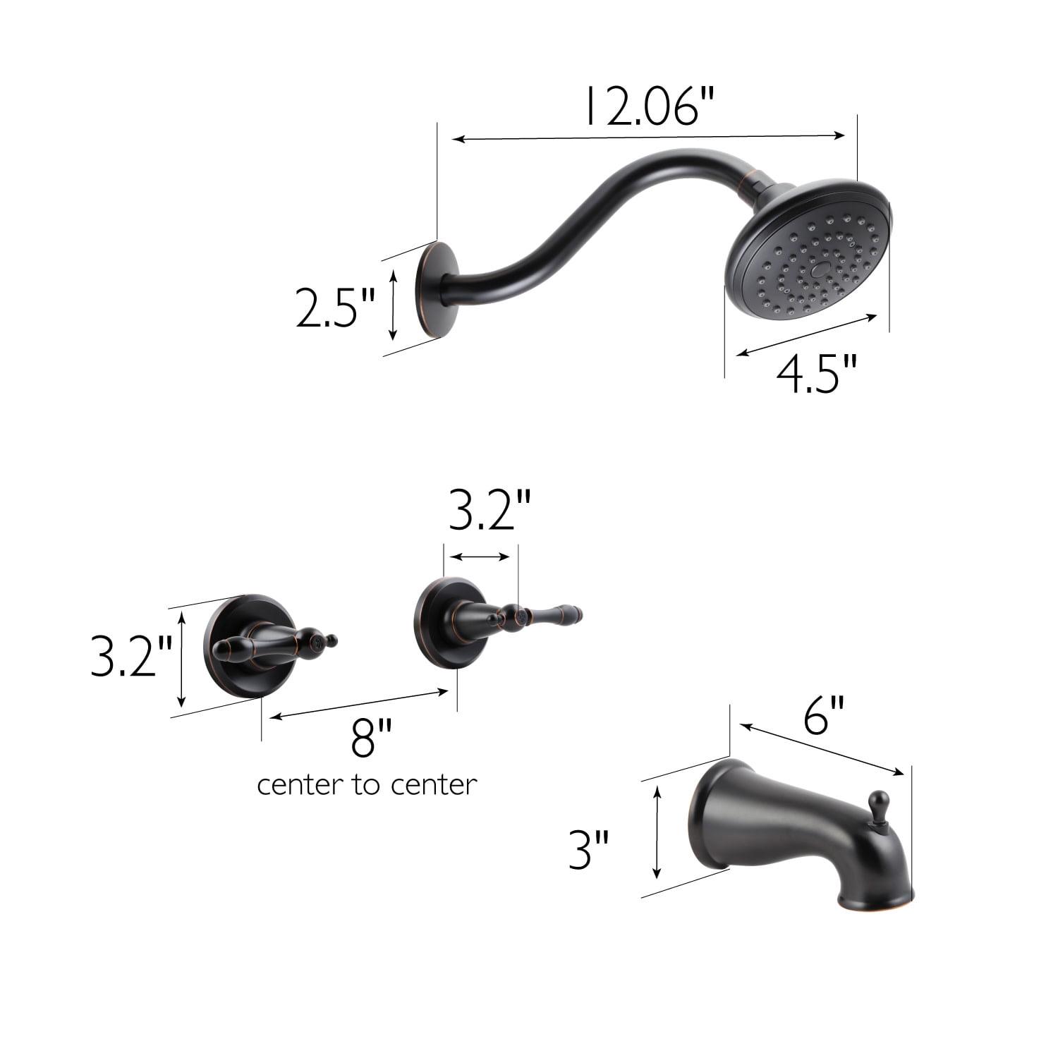 – Includes shower head, slip-on tub diverter spout, two handle trim, and valve (behind the wall installation required)
