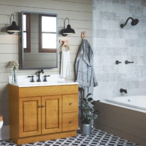 The Design House 523472 Oakmont Classic Bath and Shower Trim includes a single-function showerhead, 2-handle faucet, and valve in an oil rubbed bronze finish. This bath and shower assembly is refined and elegant with a washerless cartridge and a simple design that aids in low-maintenance upkeep. Brass waterways to ensure safe and clean water for your family. The single-function shower head has a 1.8-gallon per minute flow rate, ensuring a steady water flow after years of everyday use.It comes with a 5-year limited warranty and lifetime finish warranty to protect against defects in materials and workmanship. Product is cUPC compliant.This product comes with a 5-year mechanical and lifetime limited finish warranty