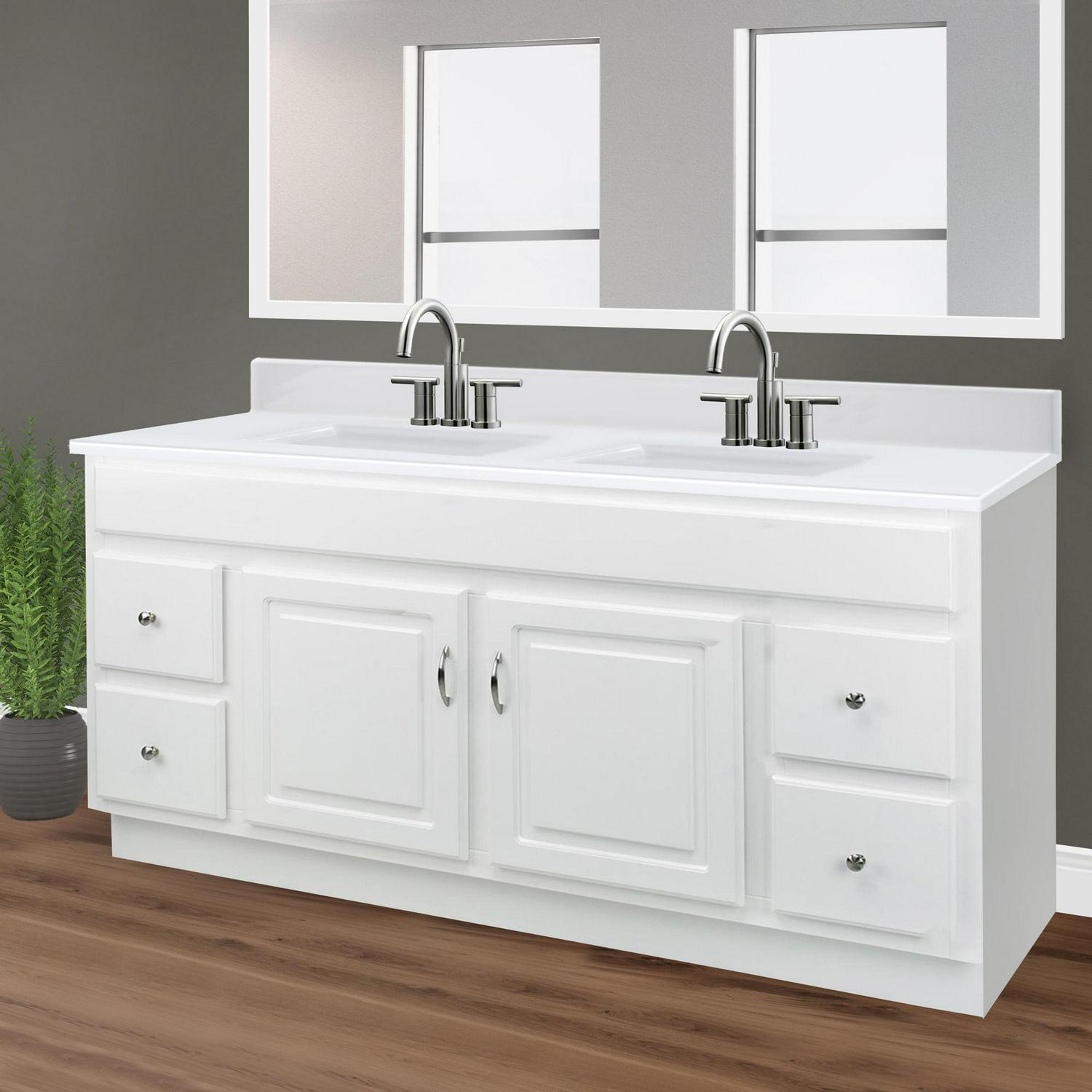 - Double vanity top gives your bathroom a stylish, versatile look with added functionality