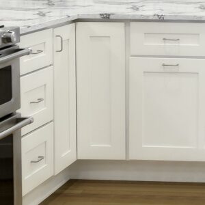 Create a stunning kitchen with Design House 561431 Brookings Lazy Susan cabinet in a white finish. We offer you a less expensive option, with quality and style comparable to competitors. All cabinets come equipped with 6-way adjustable soft-close hinges, so your doors and drawers can remain as quiet as possible. Design House kitchen cabinets are CARB P2 compliant. These kitchen cabinets come fully assembled, making the installation process fast and easy. Cabinets and cabinet accessories are sold separately for your ability to customize. Style of drawers: Shaker Number of drawers: 0 Number of doors: 2 Number of shelves: 0. Designed and manufactured by Design House, the trusted source for quality lighting, hardware, plumbing, kitchen, and bath products for every taste and budget.