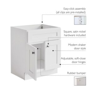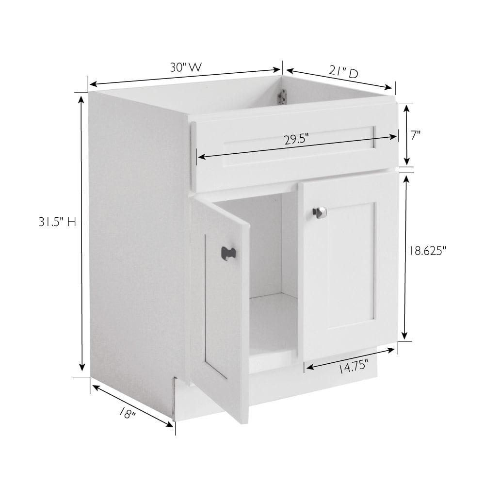 Design House 586941 Brookings 30×21 Unassembled Modern 2-Door Shaker Bathroom Vanity Cabinet Only, White