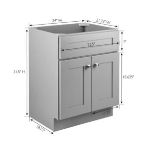 Design House 587071 Brookings 24×21 Unassembled Modern 2-Door Shaker Bathroom Vanity Cabinet Only, Gray