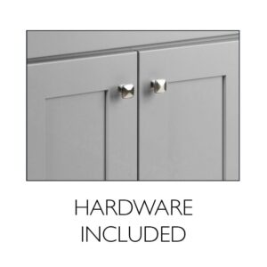 – Contemporary shaker design features gently recessed paneling on the door and drawer fronts, a simple style accented by metal knob hardware, optimized to bring a clean look to fit any space, pilot holes in the back of cabinet to change out pulls/knobs if needed