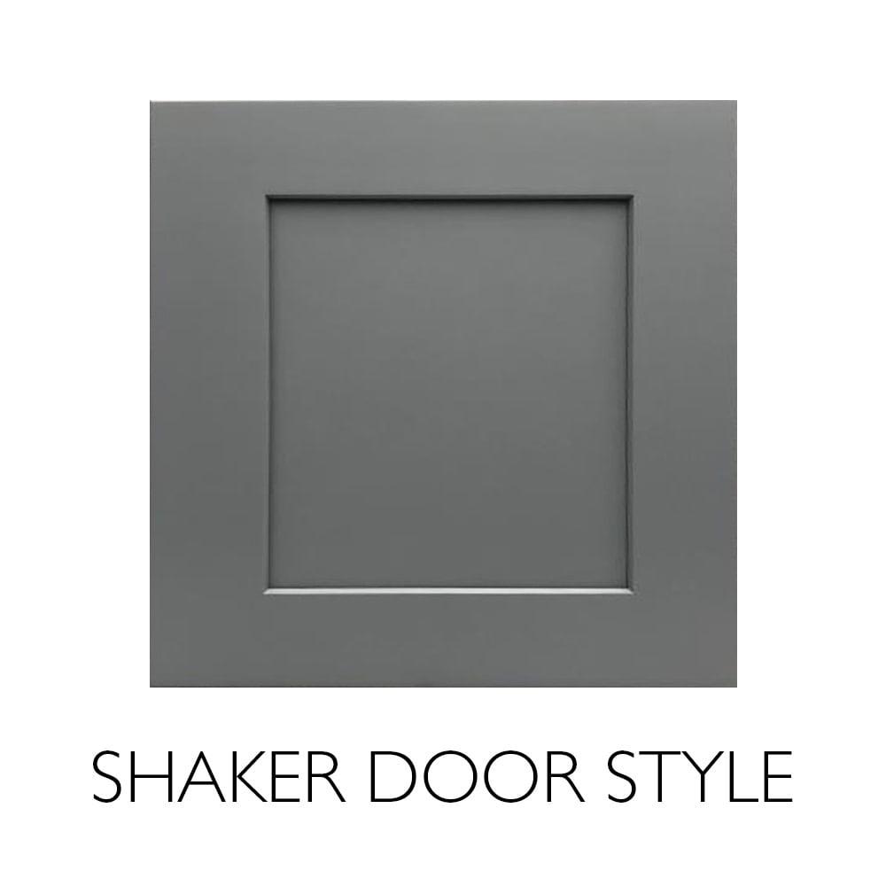 - Shaker-style raised door design, finished in Gray