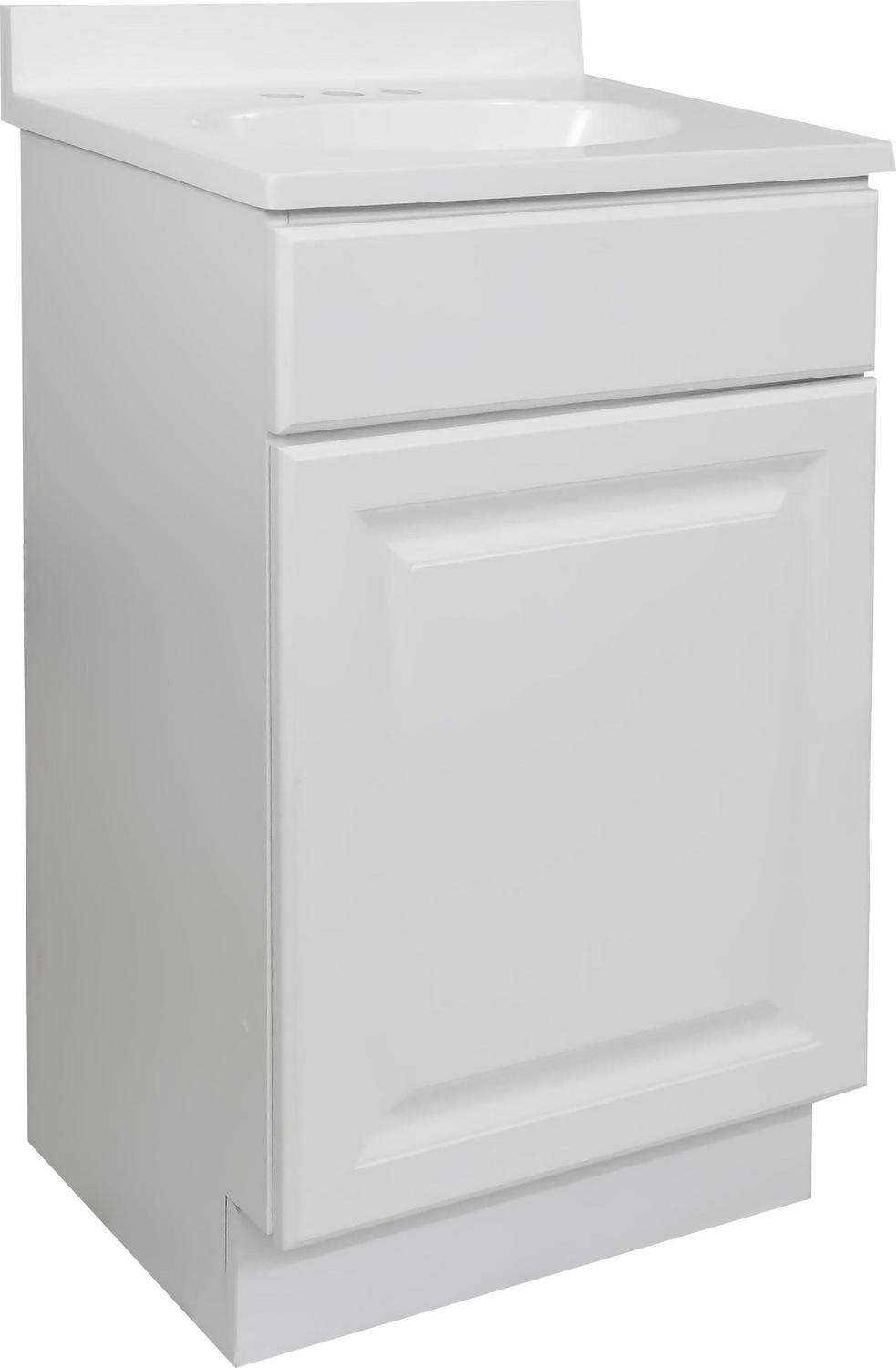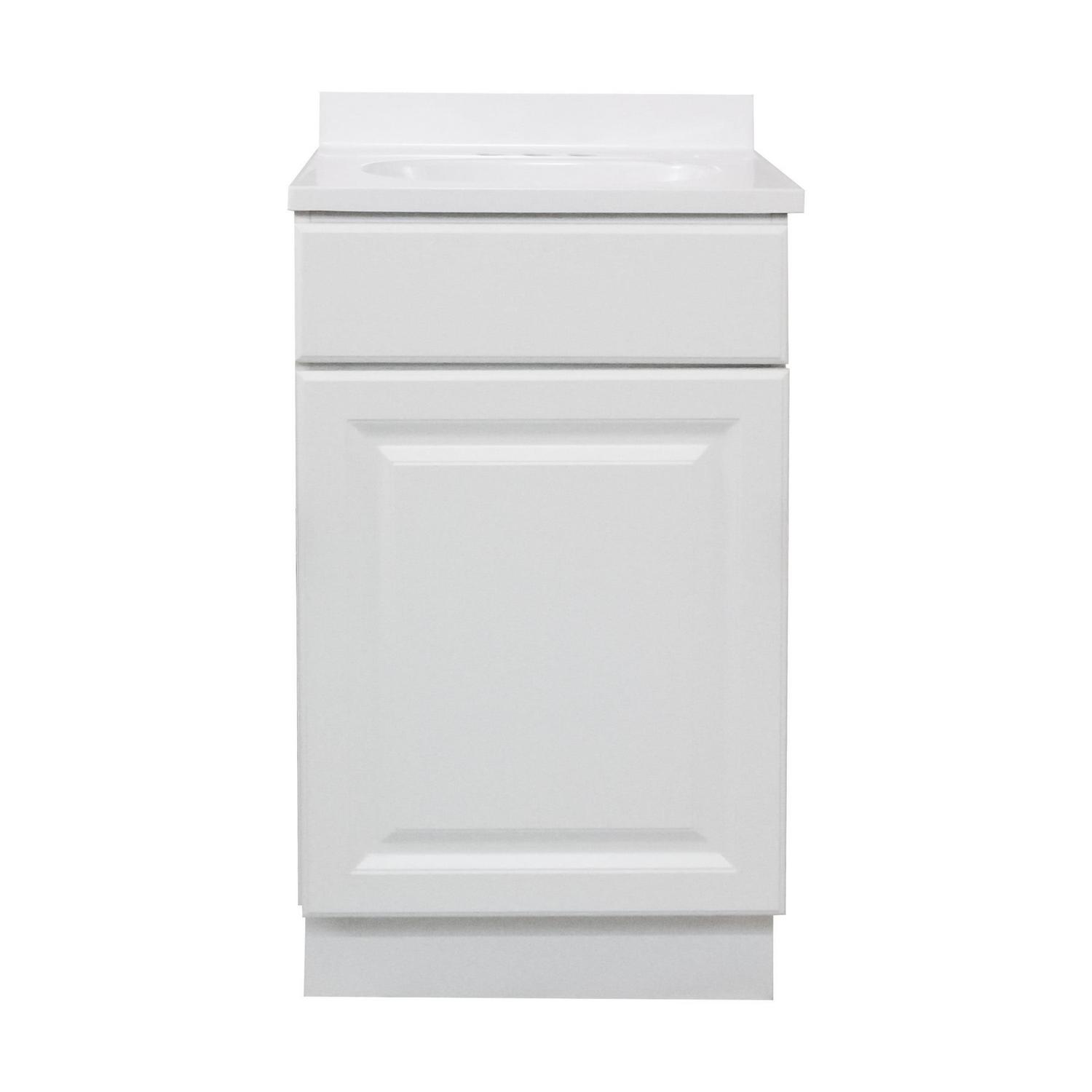 Design House 591024 Wyndham One Door Bathroom Vanity with Cultured Marble 4 Centerset Solid White Vanity Top, Unassembled, 19X17, White