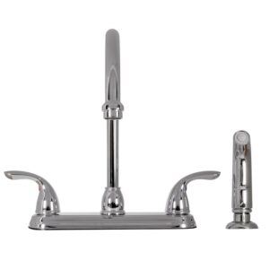 The Ashland Kitchen Faucet with Sprayer features a dual handle design and timeless style. Finished in polished chrome, use the matching side sprayer to eliminate baked on residue and rinse dishes and silverware clean of grime and food. The brass waterways to ensure safe and clean water for your family. The 1.8-gallon per minute flow rate ensures a steady water flow after years of everyday use. Wash dishes or fill pitchers with ease underneath this high vaulted faucet.ADA compliant, cUPC certified and AB-1953. The Design House Ashland Kitchen Faucet with Side Sprayer comes with a 5-year limited warranty and lifetime finish warranty to protect against defects in materials and workmanship.