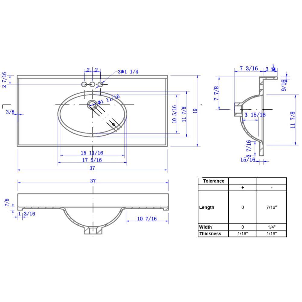 – Solid White 37″ x 19″ Cultured Marble Vanity Top