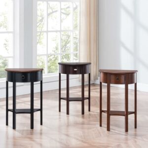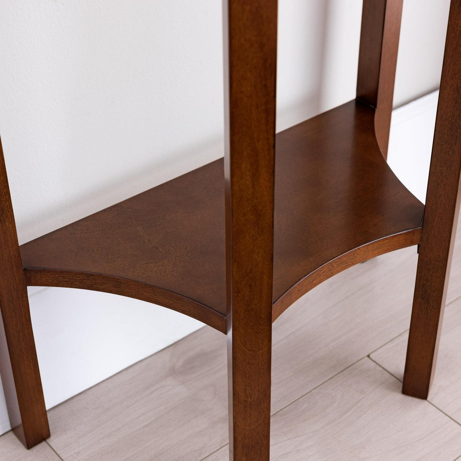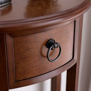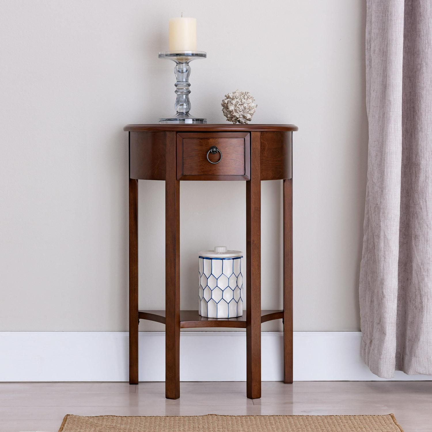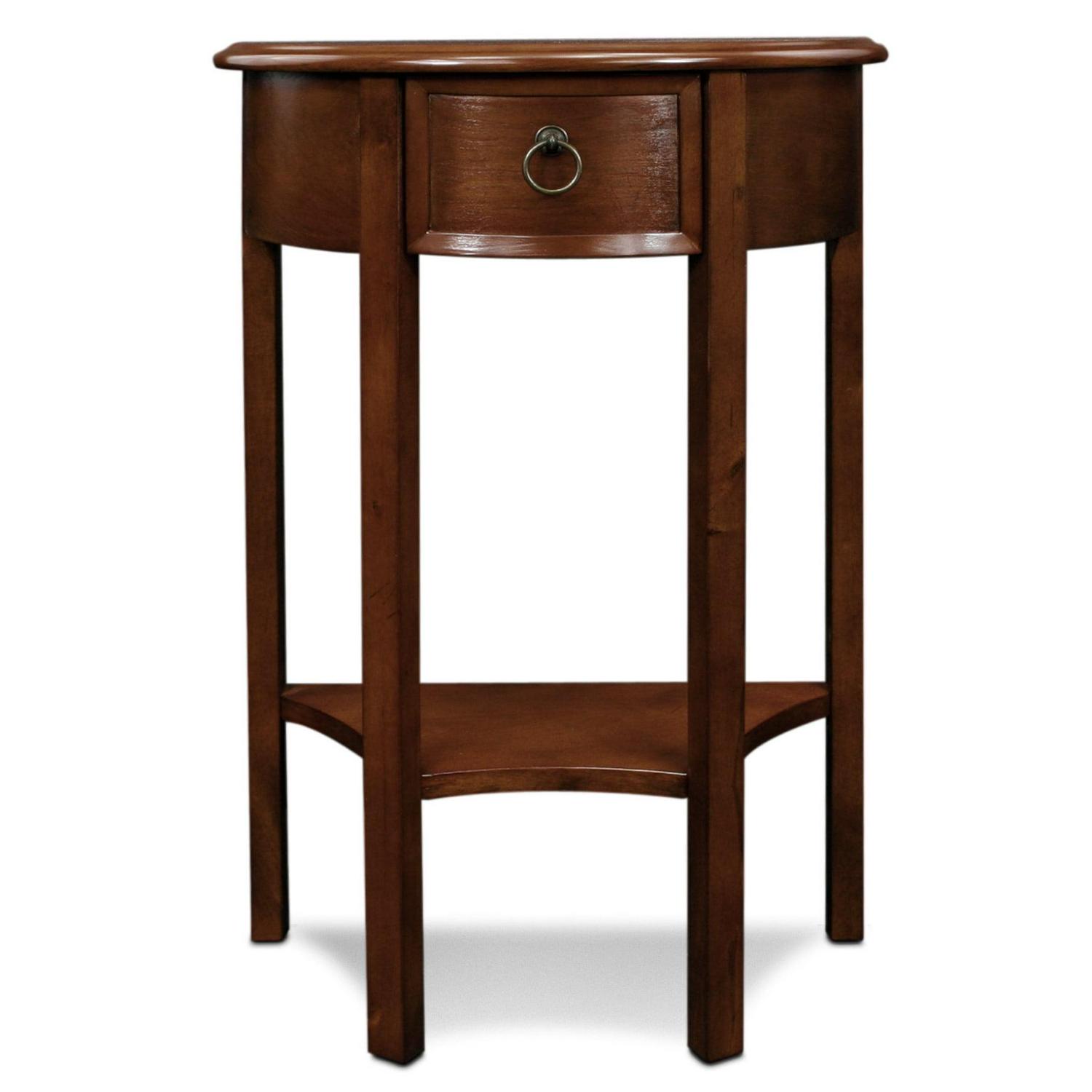 This soft silhouette is perfect for that tight area in a hallway or stair landing. Go ahead and brush by there are no corners to bump. A single drawer with blackened metal pull hardware for the things you donfoott want to see and a lower display shelf for the things you do. Designed and manufactured by Leick Home, the trusted source for quality home furnishings for every taste and budget.All Leick products are guaranteed against defects in workmanship for a period of one year under normal residential use. Please keep dated invoice for claims.