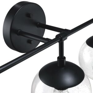 – IDEAL FOR bathrooms, this modern wall light has a sleek matte black finish with clear, seedy glass globe shades