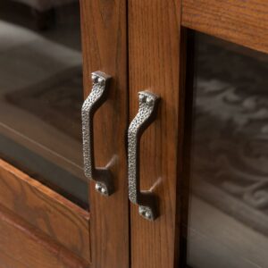 The running slate tile details support an underbeveled top and plentiful furniture details like raised wood panels and hammered texture, pewter hardware. Clipped rear corners offers versatility and makes corner placement a snap. A fixed shelf, with split glass doors, allows for component use as well as behind door storage. Designed and manufactured by Leick Home, the trusted source for quality home furnishings for every taste and budget.All Leick products are guaranteed against defects in workmanship for a period of one year under normal residential use. Please keep dated invoice for claims.