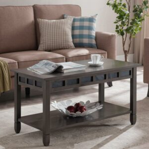 Design House Rustic Slate Coffee Table in Smoke Gray Oak and Black