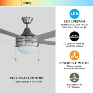 Design House Sadie LED Indoor Ceiling Fan in Brushed Nickel, 52-Inch