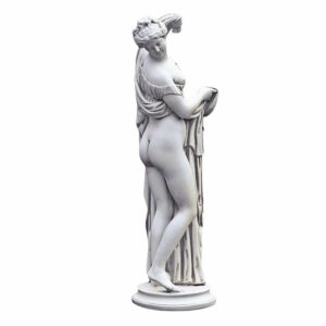Venus, thought to be more beautiful than any mortal woman, demurely admires her reflection in this sculpture called “Callipygian,” meaning “of the beautiful buttocks.” Although the late Hellenistic original once stood at the center of a pool in Nero’s Domus Aurea in Rome, it was considered “dangerously erotic” and was included amongst other such artworks in a secret cabinet when relocated to Naples in 1802. Gallery: 7″Wx9″Dx24H. 10 lbs.