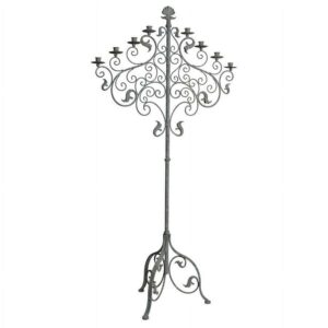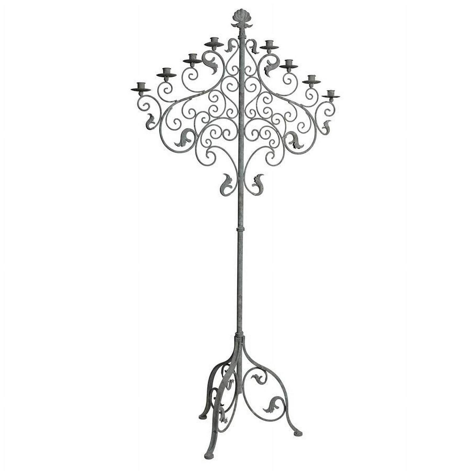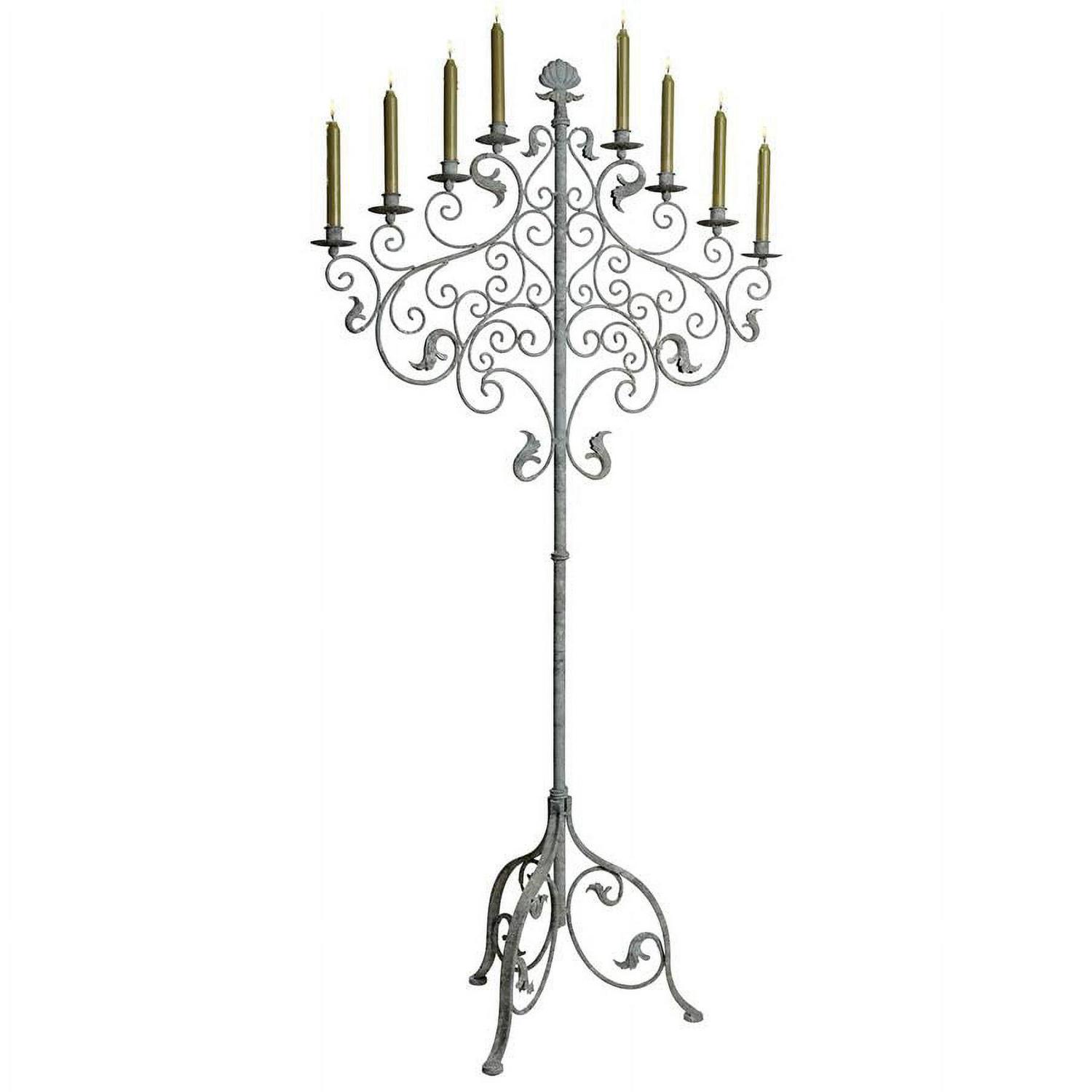 – What makes a romantic dinner with fine wine and an enchanting companion even more complete The flickering candlelight of our Castle Vecchio floor candelabra! Rising nearly five feet from a base as sturdy as its namesake castle, its ornate crown elegantly holds your eight taper candles with its traditional Italian styling. Our Design Toscano exclusive work of deocrative art is hand-crafted of sturdy metal with an antique Gothic gray finish. A sparkling statment piece to light any night! Simple assembly required. Candles not included. 27″Wx28″Dx5″H. 9 lbs.