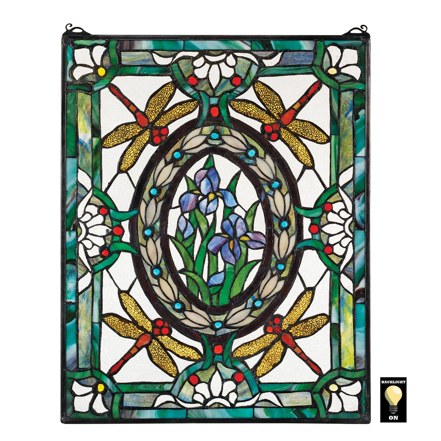 Design Toscano Dragonfly Floral Stained Glass Window