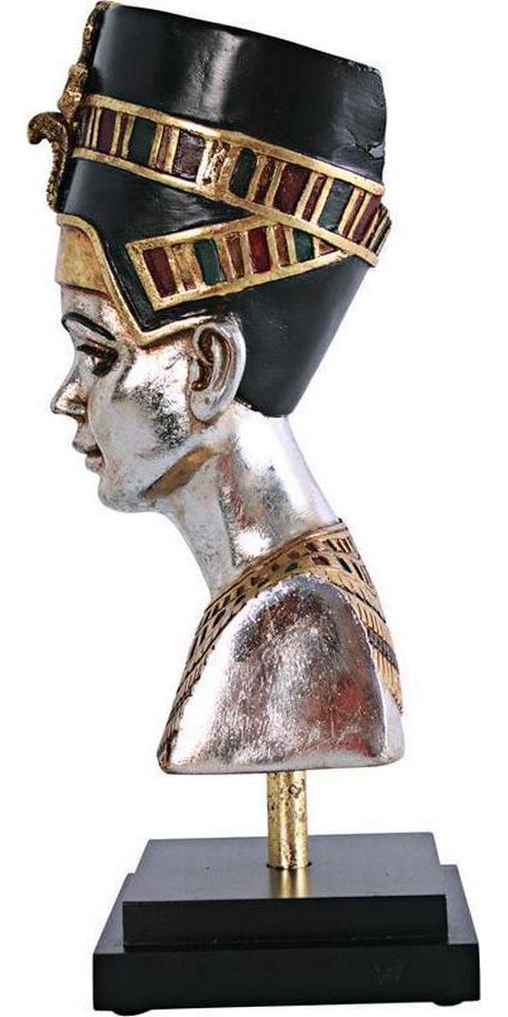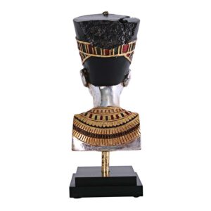 Our replica is based upon the Nefertiti statue by Thutmose that adorned the court of the Queen s husband, Akhenaton, and depicts the graceful muse whose name means “the beautiful woman has come.” It took hours to finely hand-paint the rich, royal tones of Egypt on this quality designer resin statue that is displayed upon an ebony-toned, museum-quality mount. This display-quality sculpture transforms any home bar, entertainment area or recreation room into something truly magnificent! 7in Wx7in Dx18in H. 8 lbs.