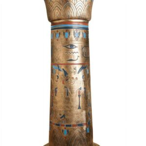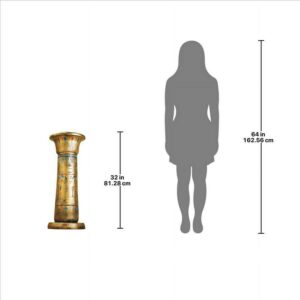 – Graceful, open lotus capitals and colorful hieroglyphics contribute to the classic Egyptian styling of this nearly yard-tall piece of instant architecture ready for display in your own temple. Faithfully replicated in quality designer resin to capture every detail, it is hand-painted exclusively for Toscano in the gold and muted royal tones of the Egyptian palette. 13″dia.x32″H. 30 lbs.