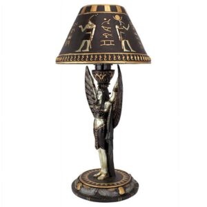 – As the archetype of feminine power and beauty, Isis raises her arms towards the heavens in our replica 1920’s Egyptian Revival lamp. Featuring a resin shade and base, and hand-painted in stunning faux silver, gold and ebony, this sculptural lamp adds historic sophistication to any decor. Switch-on cord; accepts your 40-watt bulb. 9″dia.x17.5″H. 4 lbs.