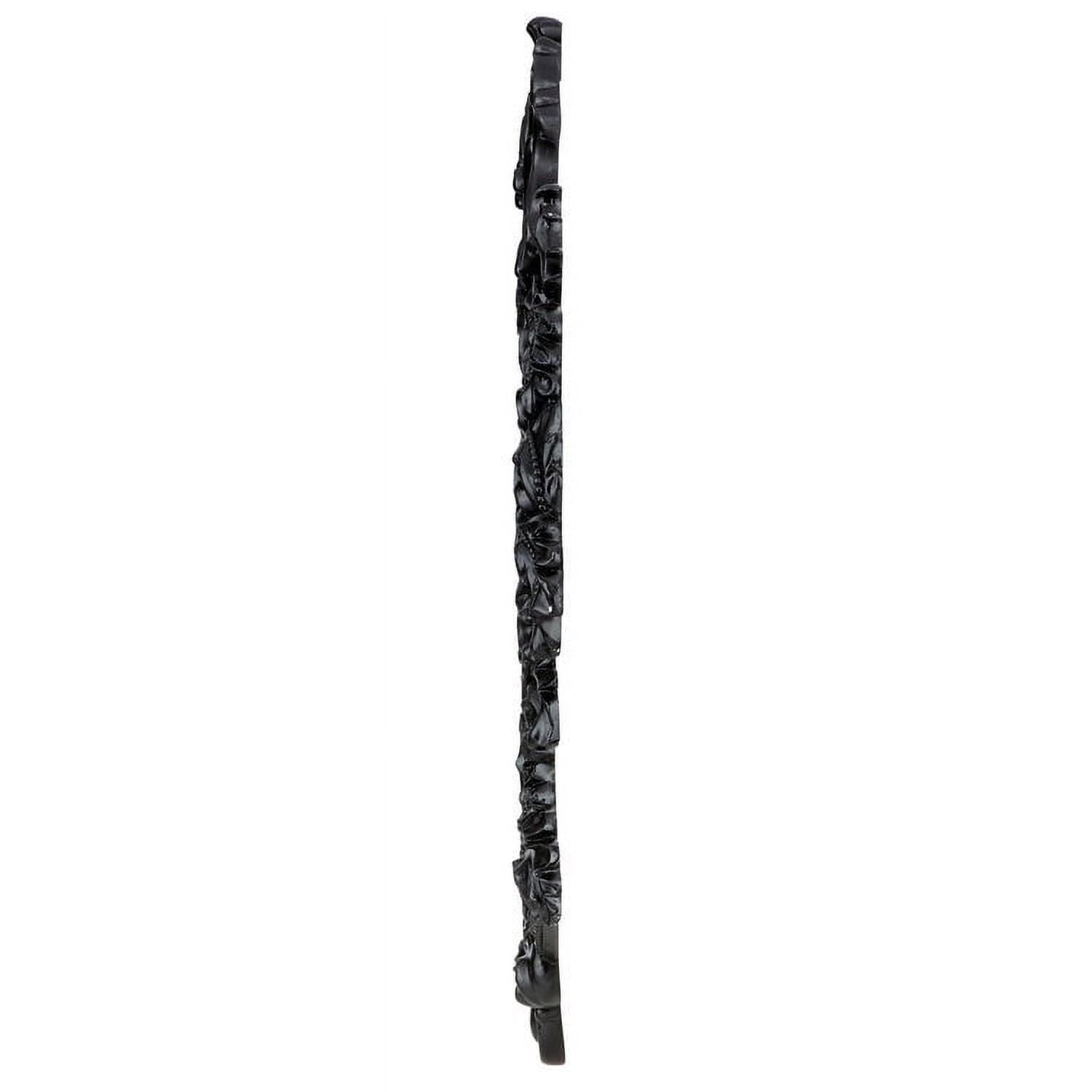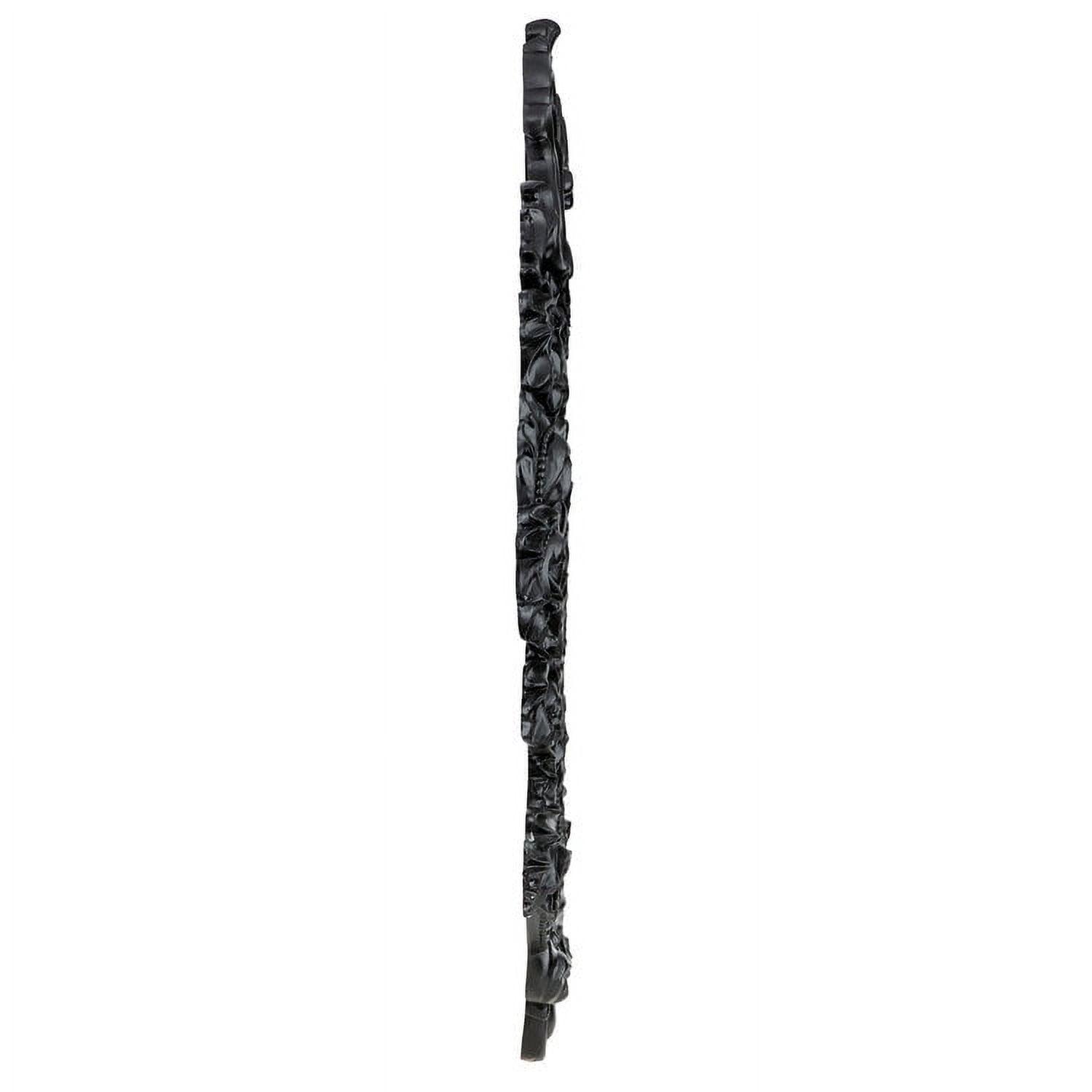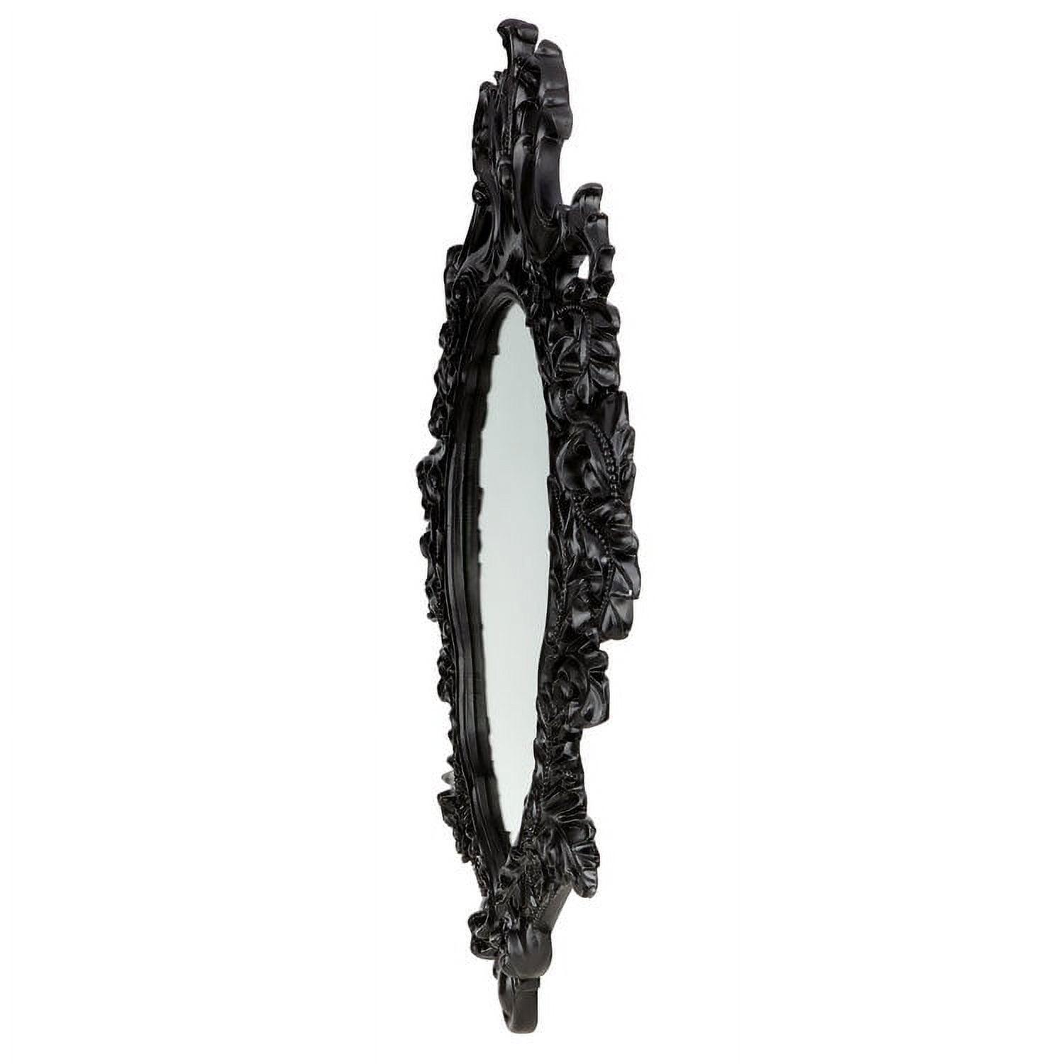 – This generously sized salon mirror sparkles to reflect its own ornate, beribboned sculpt! A garland of roses graces our replica 17th century antique, inspired by French Rococo styling found in the grand salons of Paris. Cast in quality designer resin and hand painted in a satin ebony finish, this Basil Street Gallery exclusive is striking as a centerpiece above a mantel or as the signature of a stylish entryway. 28″Wx2.5″Dx36.5″H. 20 lbs.