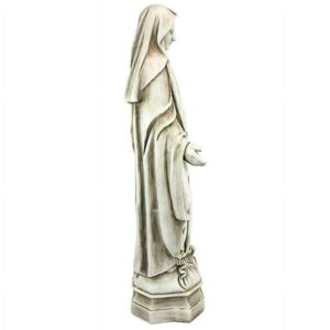 – Sure to inspire spiritual devotion, this reverent and most beautiful Christian Madonna depicting the Virgin Mary crushing the serpent is based on a French church antique. Our Design Toscano exclusive, the Immaculate Conception, will bestow grace and peace to a quiet devotional corner of your home or to a sacred garden spot. Cast in quality designer resin, our serene Queen of Heaven religious statue has an antique stone finish. 10″Wx6″Dx23.5″H. 7 lbs.