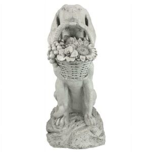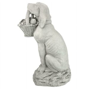 Few can deny the tug-at-the-heartstrings draw of this timeless image of man’s best friend. Offering his master a bountiful basket of sunflowers, our loyal, Toscano-exclusive dog is cast in over a foot-and-a-half of quality designer resin with an antique stone finish. Our perfect pooch will flank your front door or stand in as the perfect gift for any canine lover. 8½in Wx12½in Dx19in H. 8 lbs.