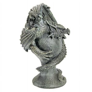 Curled and waiting to strike, our menacing, quality designer resin, winged Gothic dragon statue is intricately sculpted, from his elaborate scales to his powerfully mystic orb. Our Toscano-exclusive beast stands a foot and a half tall, ready to flank a doorway or protect the garden path of any dragon lover! 12.5″Wx8.5″Dx18″H. 8 lbs.