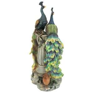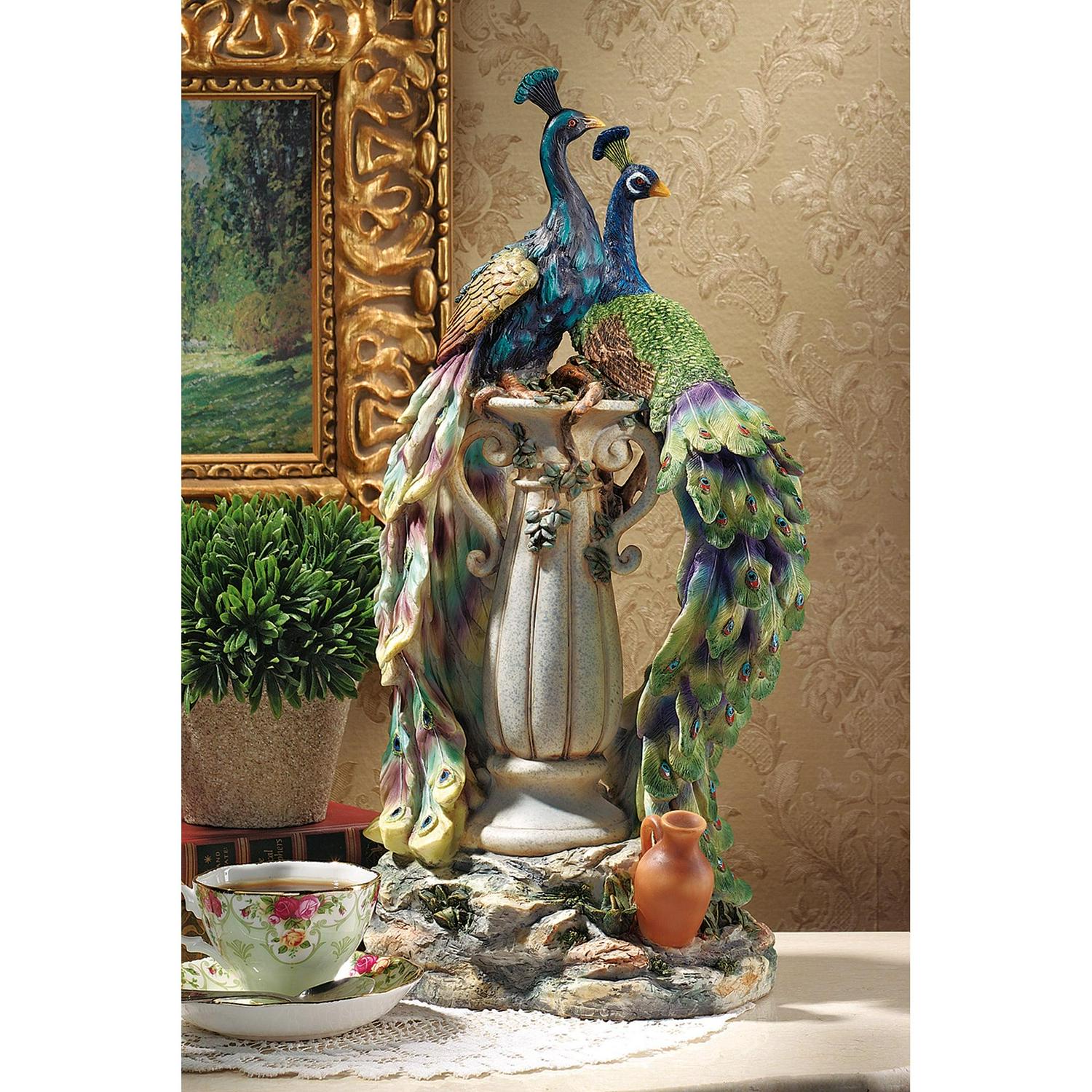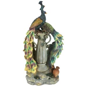 – Sculpted 360 degrees to be admired from any angle, the graceful lines, explosive color and vibrant plumage of these regal peacocks flanking a tapered urn are truly artistically inspired. At almost two feet tall, the artist’s elegant birds are cast in quality designer resin and exquisitely hand-painted for home or garden gallery 9.5″Wx7″Dx19″H. 10 lbs.