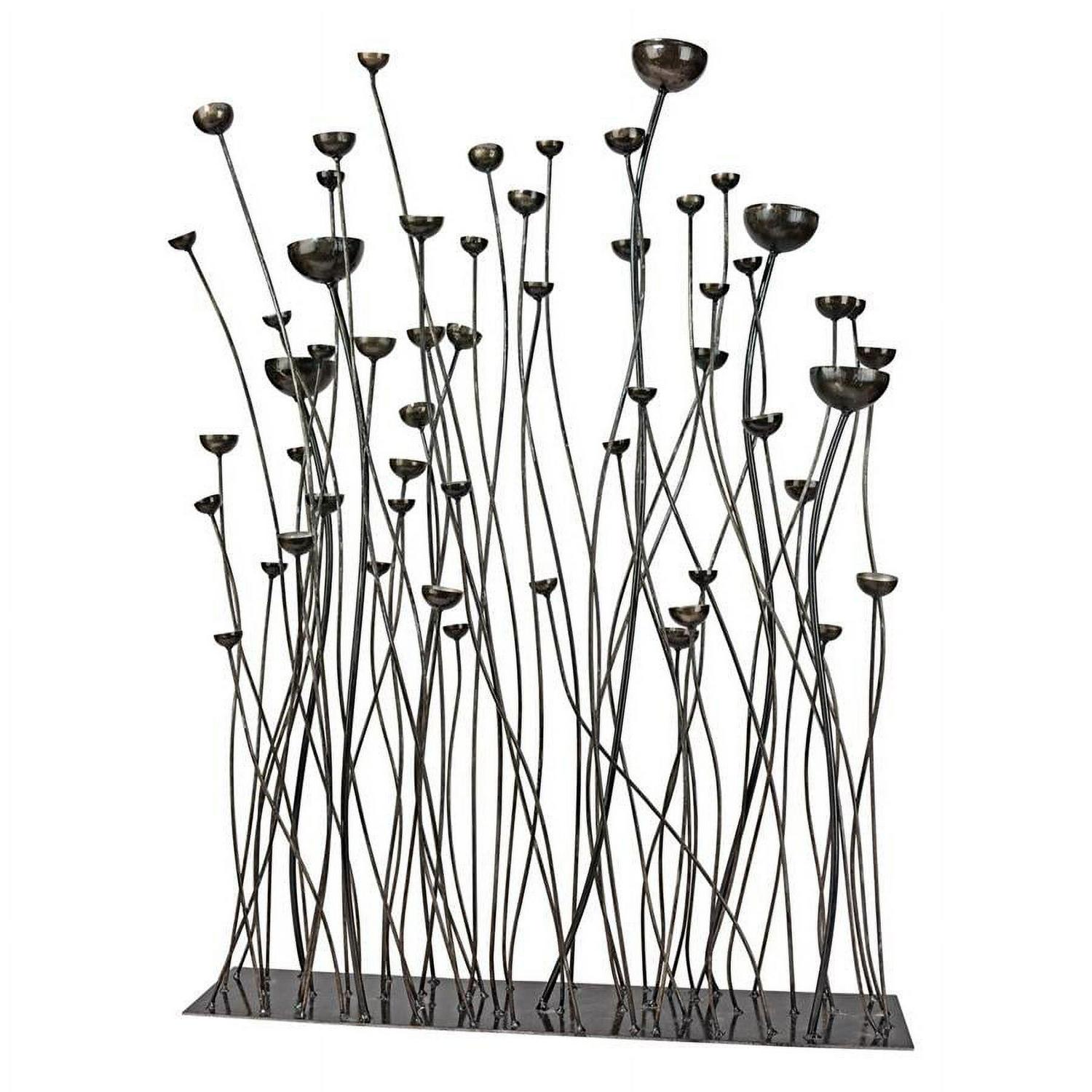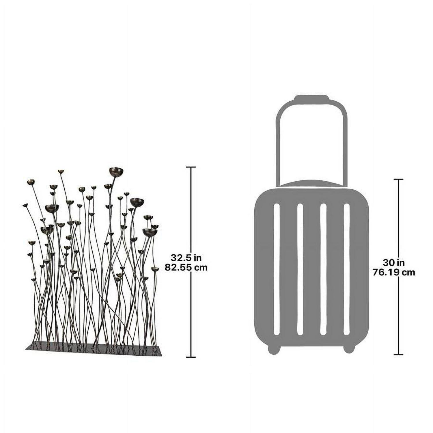 – Fraught with movement and line, this contemporary sculpture echoes the brilliantly beautiful tall grasses that silently echo across America’s wide prairies. Willowy metal spires arch and reach for the sun in an artistic dance finished in a glossy, faux bronze finish. Add your tealights to the largest bowls to illuminate and cast shadows across a beautiful evening. This three-dimensional, museum-quality sculpt is – as you’d expect – found only at Basil Street Gallery! 24″Wx5″Dx32.5″H. 10 lbs.