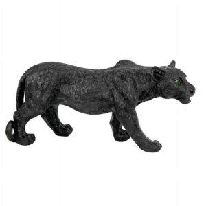 Your summer garden jungle will be labeled a dangerous exotic getaway when this sleek panther statue steps out to “greet” your visitors! The heart of African wildlife is captured in our nearly two-foot-long, garden predator Black Panther sculpture. Our artist has taken great care with the panther’s credible pose and realistic eyes to create a fitting addition to your home or garden. This fiercely beautiful Black Panther garden statue is amazingly detailed, cast in quality designer resin, hand-painted to herald the dark side of the jungle. This realistic Toscano-exclusive Black Panther statue is on the prowl! 22in Wx6½in Dx10½in H. 6 lbs.